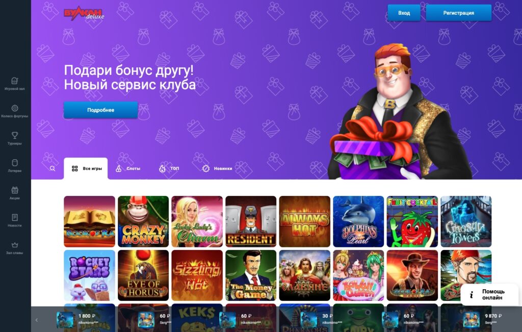 Казино Вулкан Делюкс хочет побудить вас присоединиться к ним, поэтому неудивительно, что их приветственный бонус довольно сочный. Помимо набора вращений и бонусных денег, в предложении также есть справедливые условия, что, возможно, не менее важно. А как насчет того, чтобы получить приветственный бонус? На что еще претендовать?